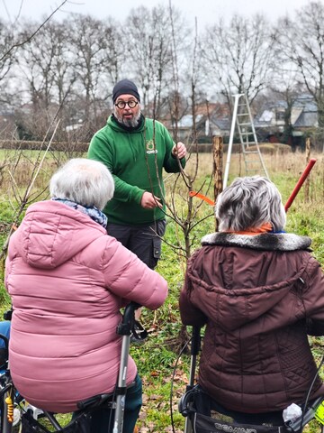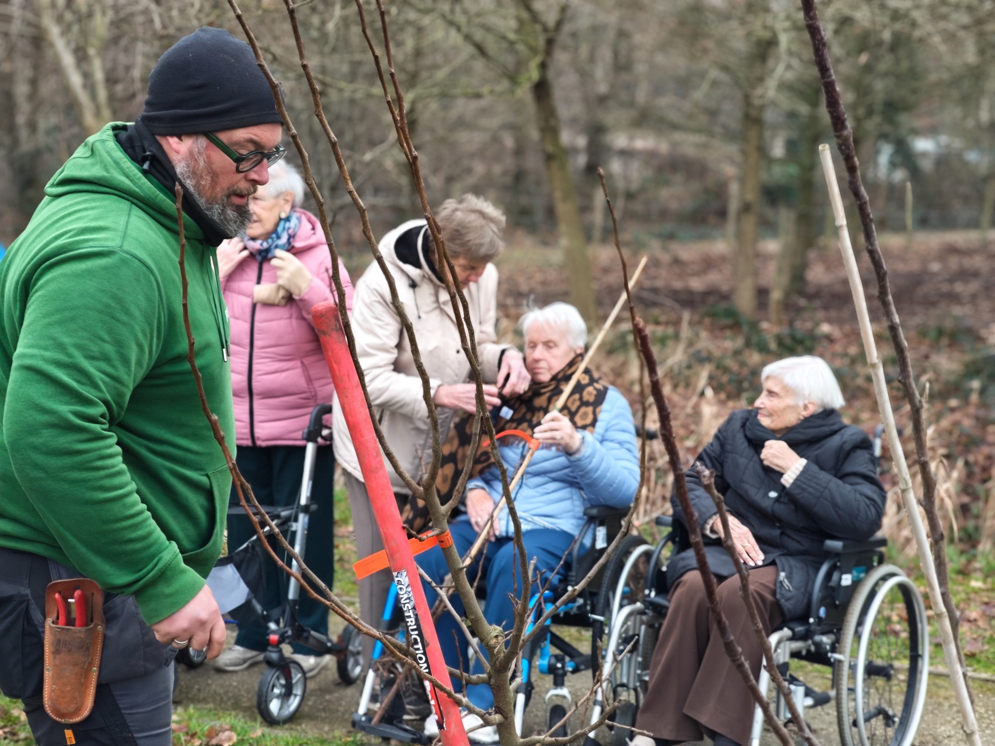 Vooraf namen enkele bewoners deel aan een boeiende toelichting door Dieter Dewitte, fruitspecialist bij Pomko. Hij gaf uitleg over de opbouw, aanplant en snoei van fruitbomen. Die kennis sloot mooi aan bij een eerdere activiteit rond het proeven van fruit, waarbij smaken van vroeger herinneringen opriepen en gesprekken op gang brachten.